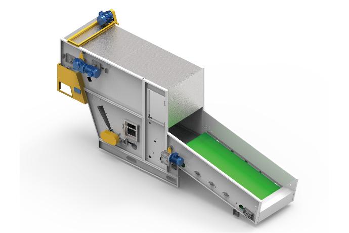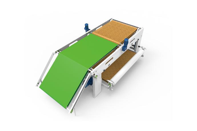 将称重开包机送过来的原料初步开松,通过送棉风机送到 给棉机中;标配压棉装置;喂入长度与开包机数量有关。